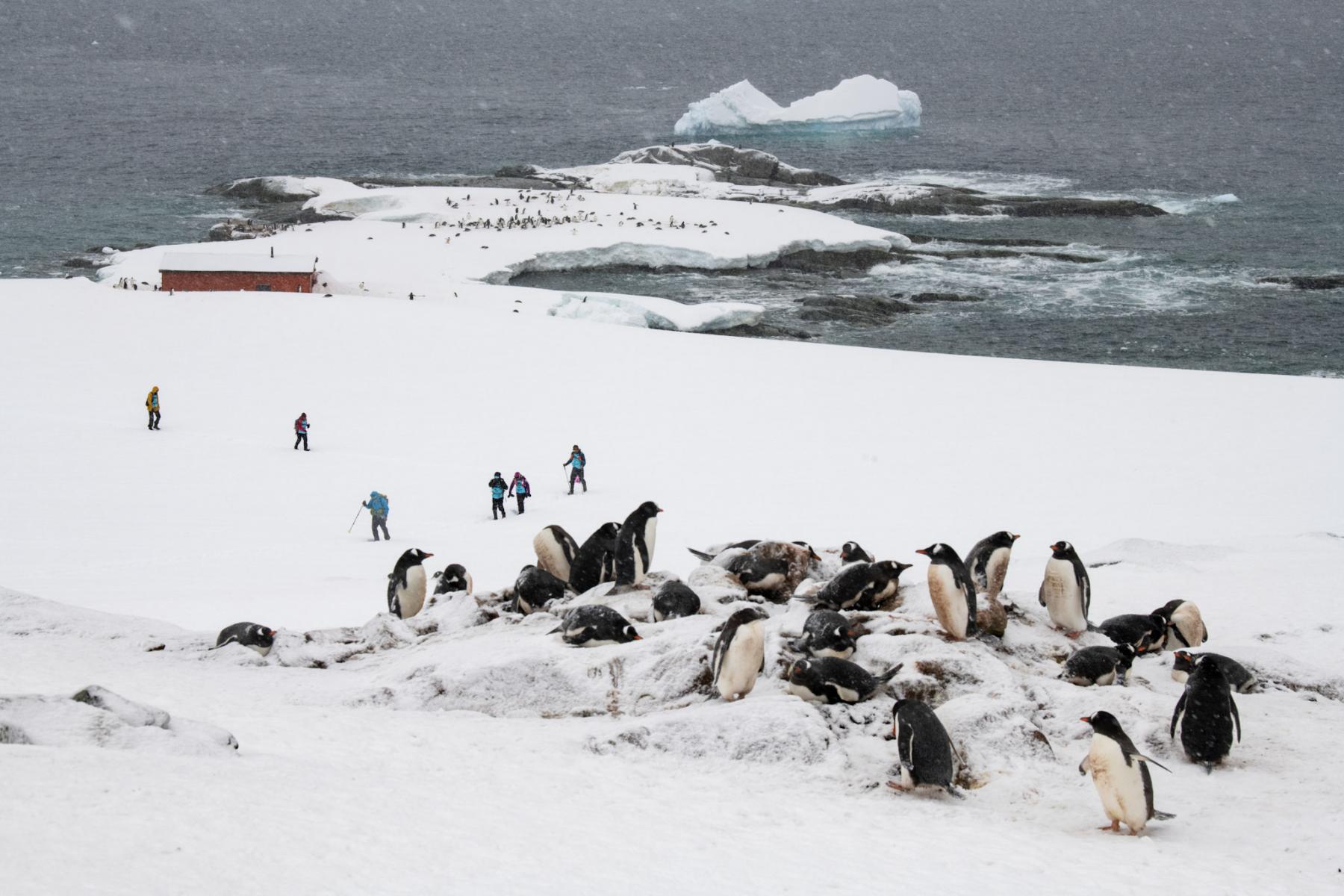 Marine mammals thrive in the surrounding nutrient-rich waters. Humpback, minke, and orca whales patrol the icy seas, feeding on abundant krill swarms. Seals are also plentiful—Weddell, crabeater, leopard, and southern elephant seals haul out on ice floes or beaches to rest and breed.