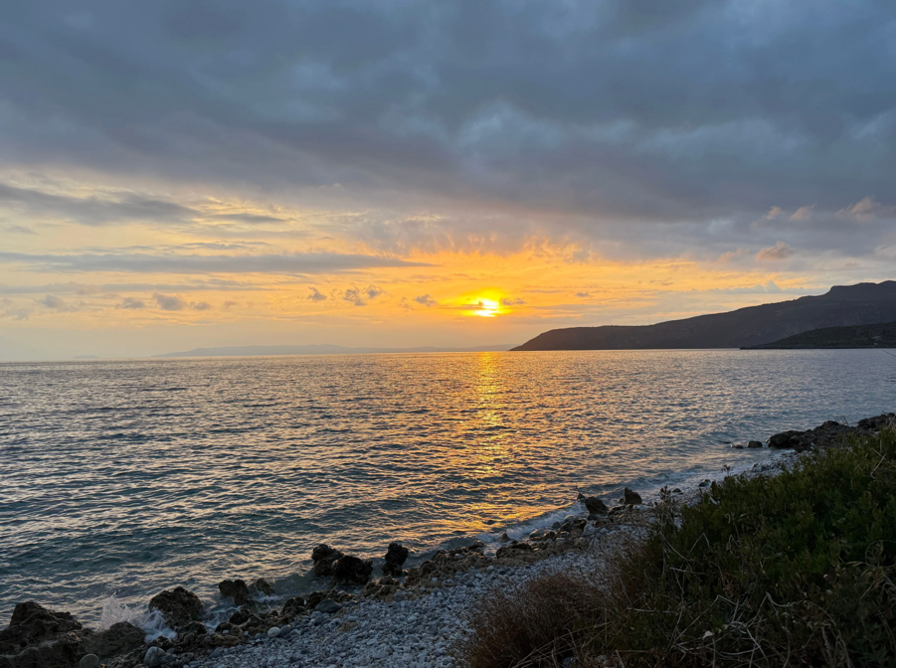 Our journey to camp 1 was a 4-5 hour bus ride. As with past races, this offered ample opportunity to get to know those you would be spending the next week with sharing camp and trails. The views along the way offered a glimpse into the scenery that the next week would hold. I sat next to my tent-mate Linda, whom I had the chance to get to know after spending time together in Athens and in a our journey to the host town Marathon. While passing miles of mountains and towns, I could only imagine myself traversing this beautiful landscape. Such a wonderful anticipation of a week to come! At the end of our bus journey, we were greeted ceremoniously with local music as we walked into camp 1. The all too familiar tents arranged into a communal circle, something that has become familiar over the years of racing RTP races. Set up next to a beautiful coast line offered stunning views of not only the mountains to the west, but a sunset that lent itself a canvas of colors as the sun dipped below the horizon. I was fortunate to have what I thought was the lottery of tents with amazing tent-mates. Heather and Lisa from RTP Namibia, Martha from RTP Jordan (and who paced me through 37 gruelling miles at Bigfoot 200!), Linda who was racing her first RTP race (whom we would all learn later was super-fast and was a podium contender turned AG winner in spite of facing illness during the race). We also had the youngest competitor who has ever attempted a 250K self-supported stage race. Brook at the tender age of 13 would race with her Dad Michael (a 4 Deserts Grand Slam Alum and RTP veteran racer). Wow is the least I could say as I truly admired her determination, commitment, and grit to take on this enormous challenge at such a young age!